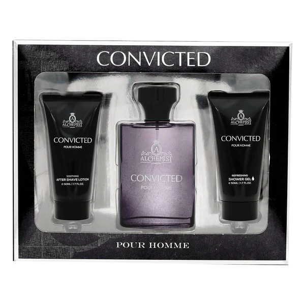 The Alchemist London Convicted M Eau de Parfum 100ml 3-Piece Gift Set is an affordable grooming package designed for men seeking a cohesive and masculine fragrance experience.